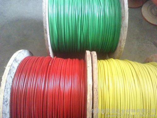 涂塑钢丝绳是以磷化涂层钢丝绳、镀锌钢丝绳、不锈钢丝绳、光面钢丝绳为原料,对钢丝绳进行外层包塑处理,一般为PVC包塑处理,其塑料包括国产钢丝绳pvc塑料和进口钢丝绳pvc塑料。涂塑钢丝绳的颜色有透明白色、黑色、黄色、绿色、红色等等,可以根据客户需要涂上不同的塑料颜色;经过涂塑的钢丝绳表面看上去更加美观,钢丝绳结构更加稳定,达到一定的缓震和抗挤压效果,能够延长钢丝绳的使用寿命。