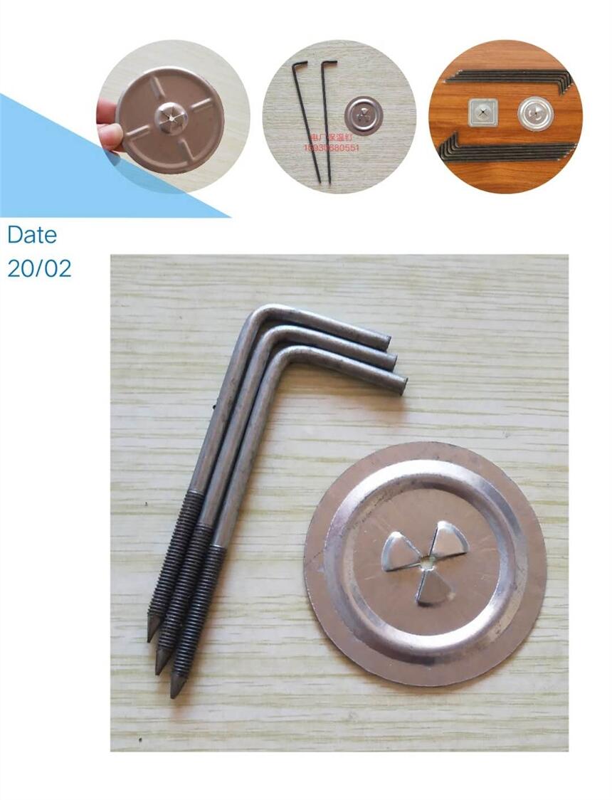 不锈钢保温钉,锚固件是将陶瓷纤维、轻质隔热砖、不定型耐火材料等轻质耐材与窑炉金属壁板相连接、固定的结构件。在电厂保温施工中,首先,保温钩钉、支腿等一定要由经验丰富的焊工师傅牢固地焊接,保温钩钉需要提前预制安装完,保温材料应该与保温钉保持紧固牢固。