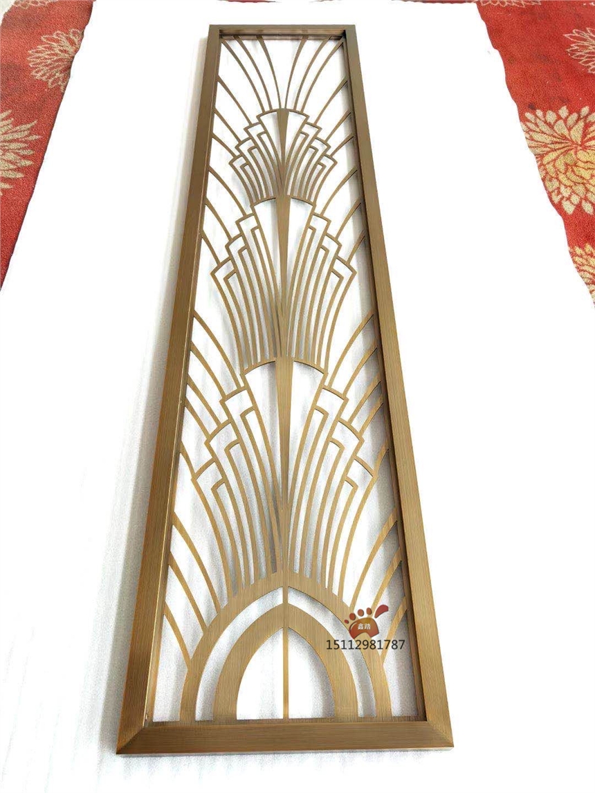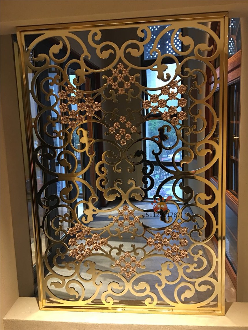 不锈钢屏风上有各种图案,可以画花鸟虫山水、书画传说。不仅图案丰富,而且颜色多样。比如玫瑰金中高贵的黑色钛金的神秘感、设计的内容、设计工艺的优雅和雕刻工艺的精致都体现了主人的品味。