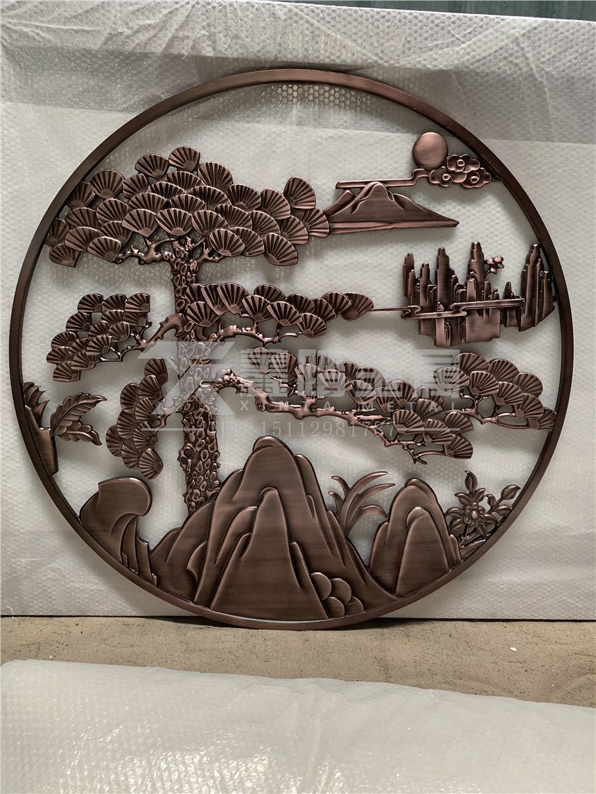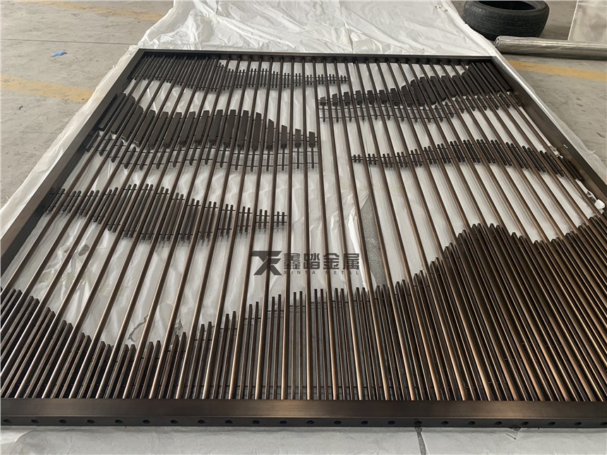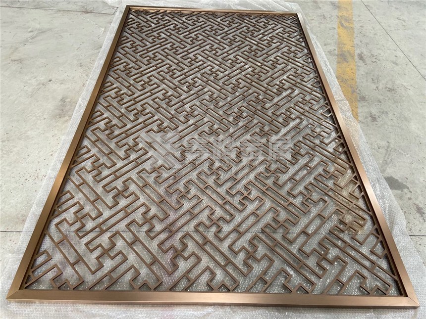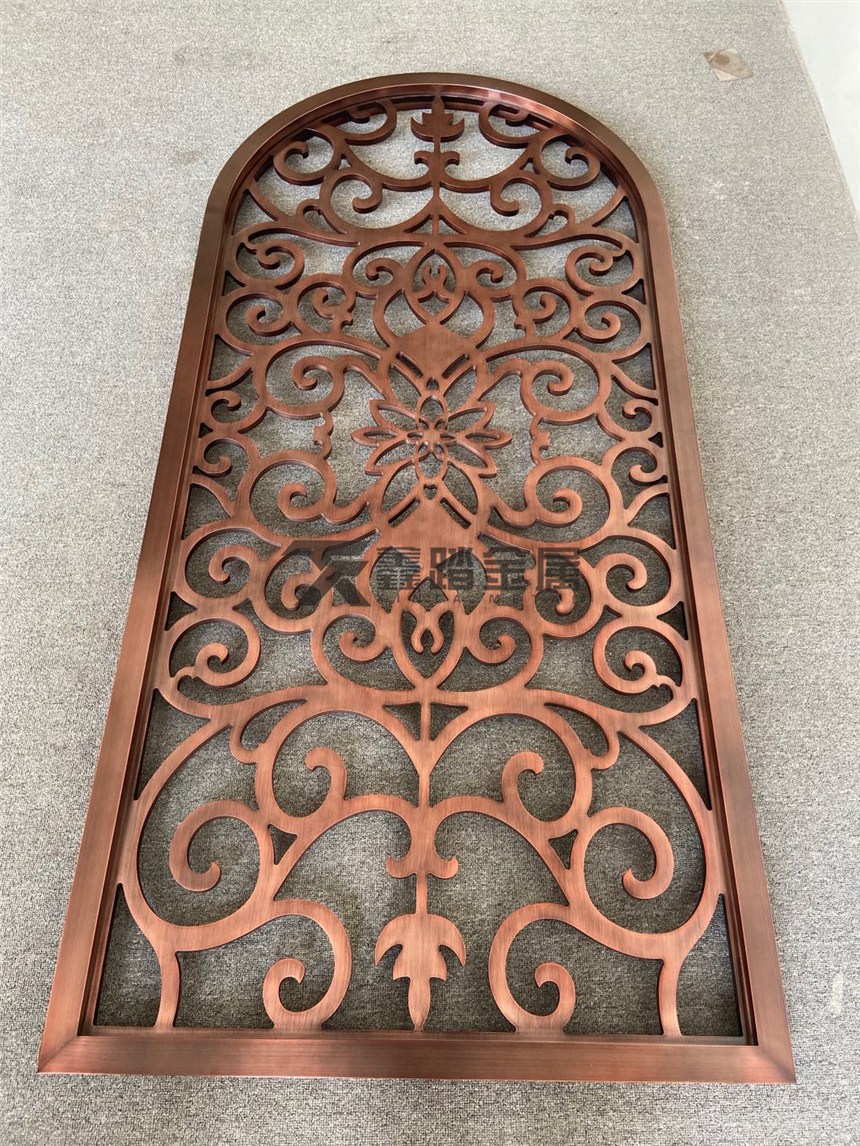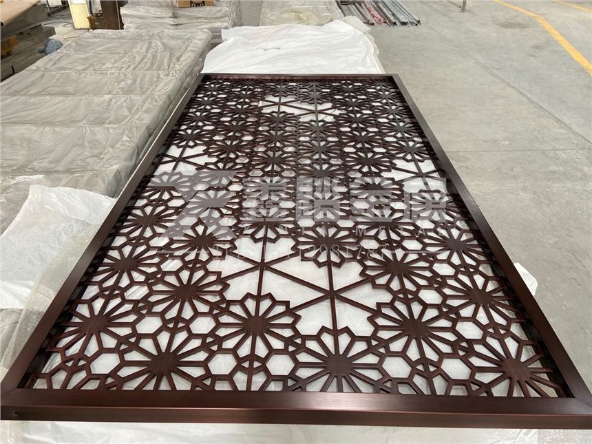 纳米喷涂红古铜不锈钢激光铜钱花格屏风做旧工艺做出来的效果很复古有年底代感。纳米喷涂拉丝红古铜不锈钢屏风作品不能归属为现代有价值的屏风,关于现代屏风的定义必须从传统屏风与现代屏风的对照来界定。但是具备装饰作用当然现在生活中的一些现象往往是有偏差的,现代生活中生产出来的物品未必就能称之为有价值的物品,在古代的屏风中就有很古董的,格调很低谷的来充代艺术纳米喷涂拉丝红古铜不锈钢屏风。