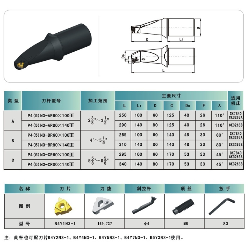 石油管螺纹刀具钻杆Ⅲ型内螺纹刀片用方柄刀杆P4(5)N3-CR80×140Ⅲ