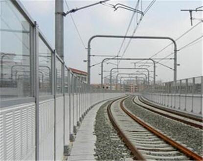 声屏障主要由钢结构立柱和吸隔声屏板两部分组成,立柱是声屏障的主要受力构件,它通过螺栓或焊接固定在道路防撞墙或轨道边的预埋钢板上;吸隔声板是主要的隔声吸声构件,它通过高强弹簧卡子将其固定在H型立柱槽内,形成声屏障。声屏障的设计已较为充分地考虑了高架高速道路、城市轻轨、地铁的风载、交通车辆的撞击安全和全天候的露天防腐问题。它外形美观大方,制作精致,运输、安装方便,造价低,使用寿命长,特别适用于高架高速道路和城市轻轨、地铁的防噪声使用。