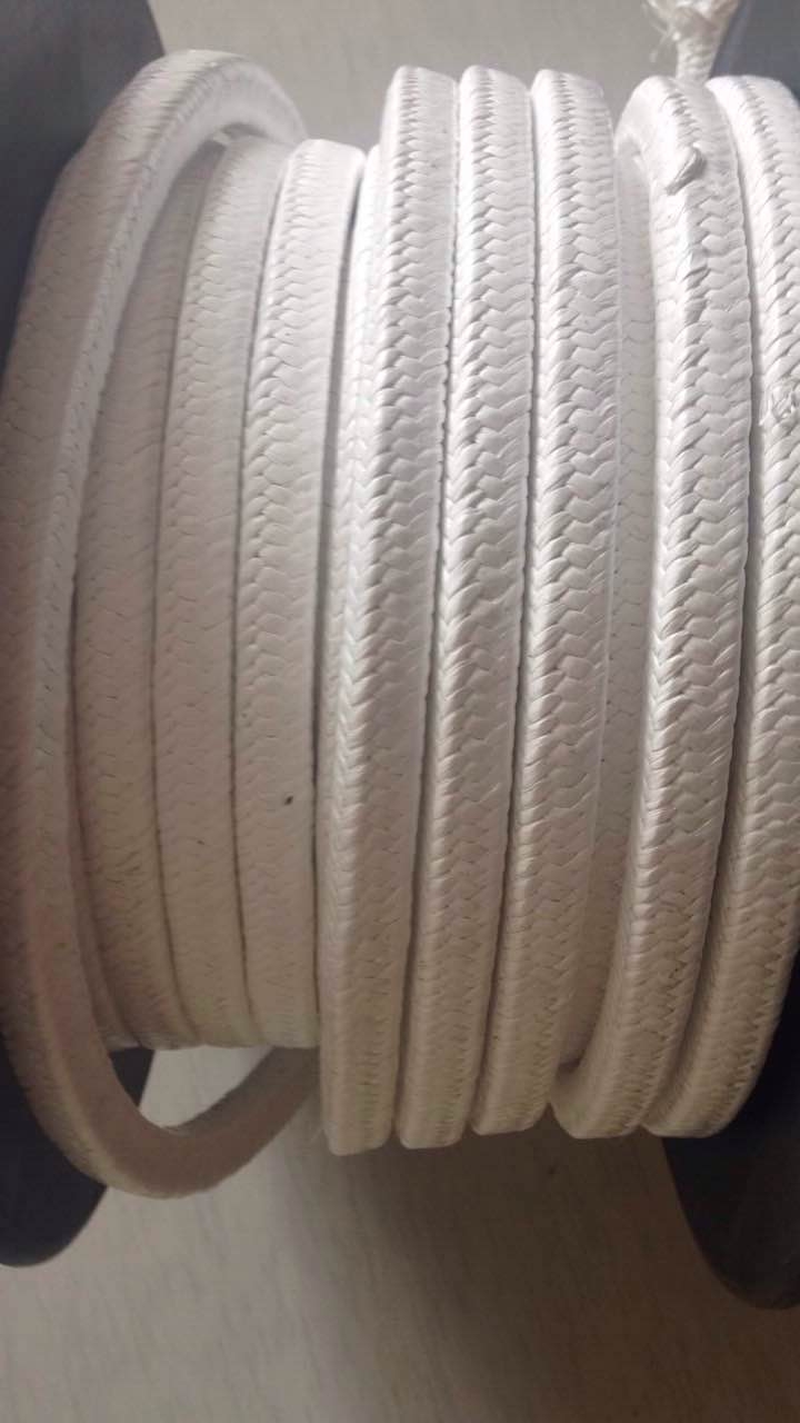 第五:割裂丝四氟盘根由经烧结且充分拉伸的多股四氟线编织而成,并在四氟中进行了完全的浸渍,在编织过程中再次浸渍。拥有可挠性的特征、尺寸安定性,具有良好的抗压缩、防挤压及高的结构强度和密度。是工业领域应用效果好的盘根之一。属通用型盘根,可用于食品、医药、造纸、化纤等行业,尤其是高压阀门、柱塞泵、搅拌器、混合机,高外围速度的轴、杆、活塞、阀、伸缩节等设备。适用于除可溶性碱金属和游离氟离子以外的所有化学介质。