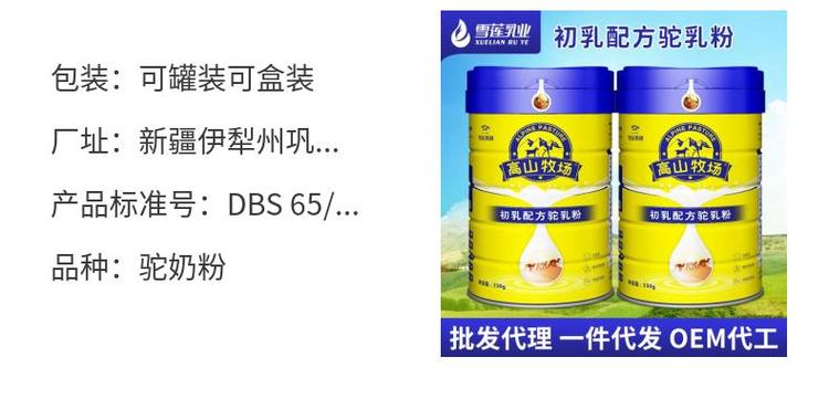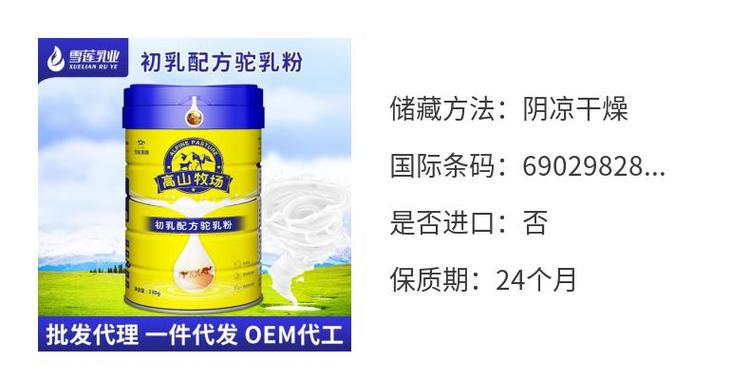 配料表 | 全脂驼乳粉、水解蛋黄粉、DHA、乳铁蛋白、叶酸、牛磺酸等 | ||