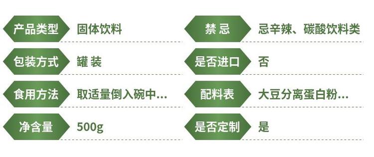 配料表 | 大豆分离蛋白粉、乳清蛋白粉、驼奶粉、复合益生菌粉等 | ||