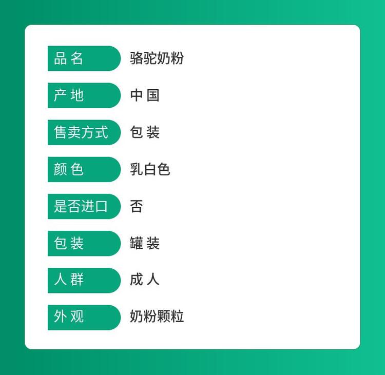乳白色 阴凉干燥 包装 产品标准号DBS 65/014 新疆 成人 骆驼奶粉 品牌 | 其他 | ||