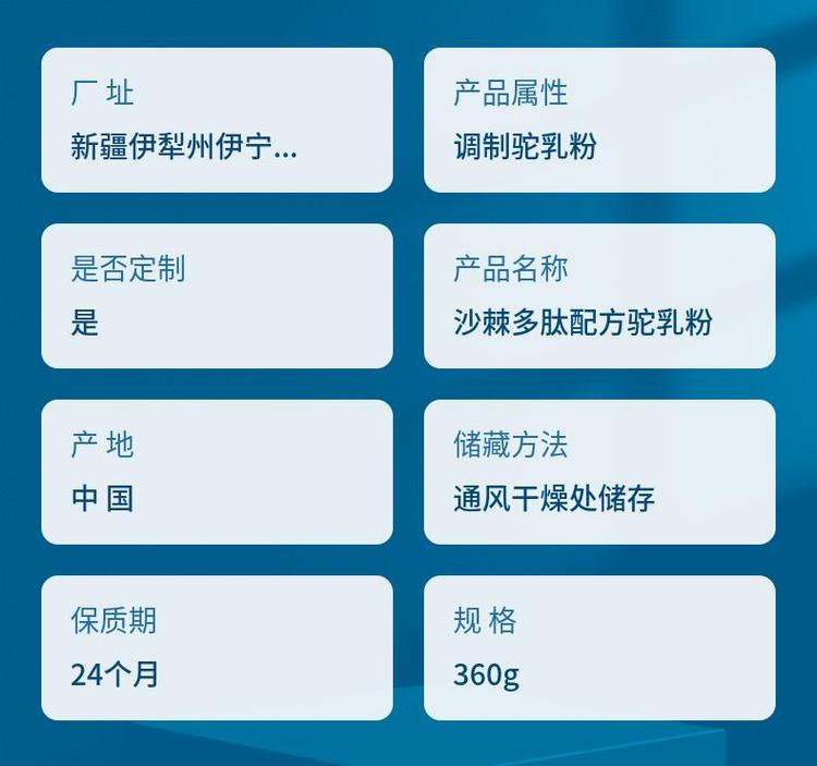 产品名称 | 沙棘多肽配方驼乳粉 | ||