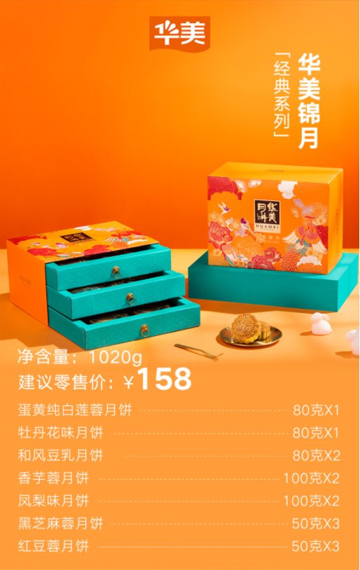 华美中秋礼品送礼1020g锦月月饼三层礼盒团购蛋黄莲蓉凤梨红豆