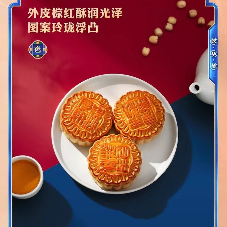 内配规格 | 蛋黄纯白莲蓉月饼 80克*2 红豆蓉月饼 80克*2 柠檬百香果月饼 80克*3 奶油绿豆蓉月饼 80克*3 炭烧咖啡蓉月饼 100克*2 | ||
