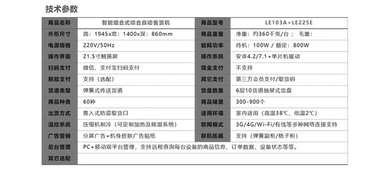 定制校园自助售货机以勒 300个 是 制冷 LE103 225E 瓶/罐装饮料 品牌 | 以勒 | ||