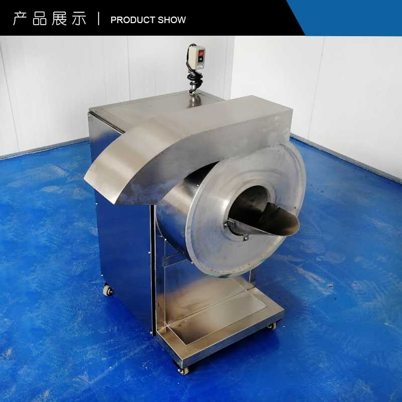 采用旋转拨料盘上的导料槽送料;倾斜分布的小刀、弧形斜刃大刀进行切削。具有切面光滑质量好、切菜效率高、操作方便及能耗低等特点。与蔬菜接触部位均采用铝合金及不锈钢材料制作,符合食品加工机械卫生标准要求。