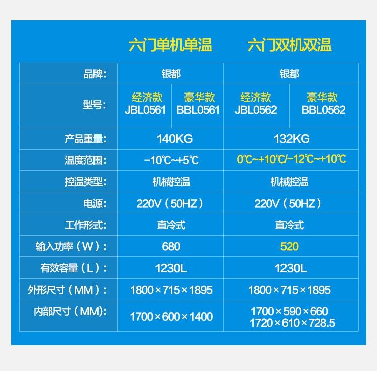 ,优质的冷柜全部蒸发管都采用优质铜盘管并处理成宽面异形银都六门冷柜。