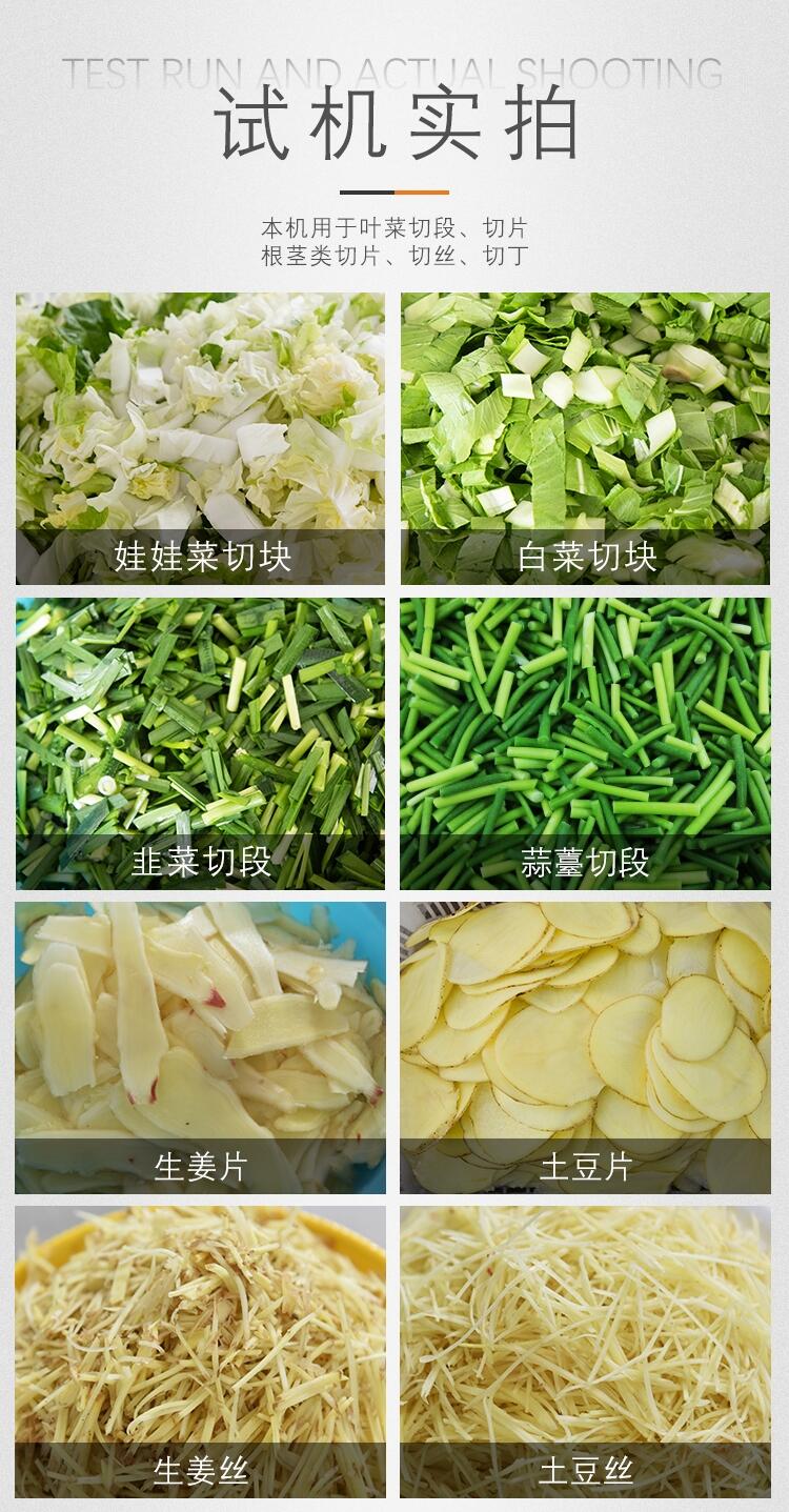 8.功能:该机械适用于多种蔬菜切条、切丝、切段、切片