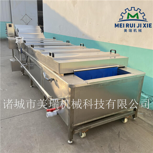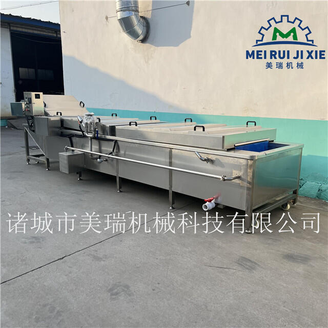 美瑞预制菜加工设备 净菜加工成套流水线 全自动蔬菜清洗机厂家通过循环水泵的水循环作用,让杂质进入过滤水箱,化肥、重金属离子,添加剂、细菌等有害物质,达到无死角,干净卫生,截留物易清理等效果。 清洗水在沉淀杂质的清洗水经过滤水箱过滤后可二次循环利用,起到节水的作用。 处理上,采用过滤水箱设计,三次过滤拦截让杂质残留在水箱处,设备采用进步的设计方案,内胆式结构,为了更好的去除物料上残留的农药、本设备加设了臭氧发生器,进行消毒杀菌。清洗设备水槽方便;在清理杂质方面,