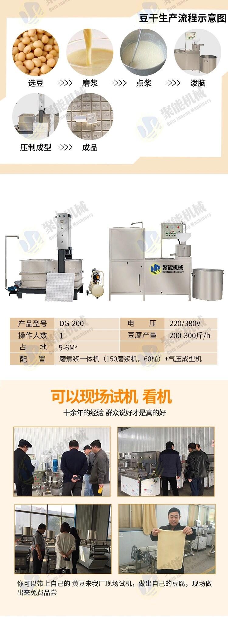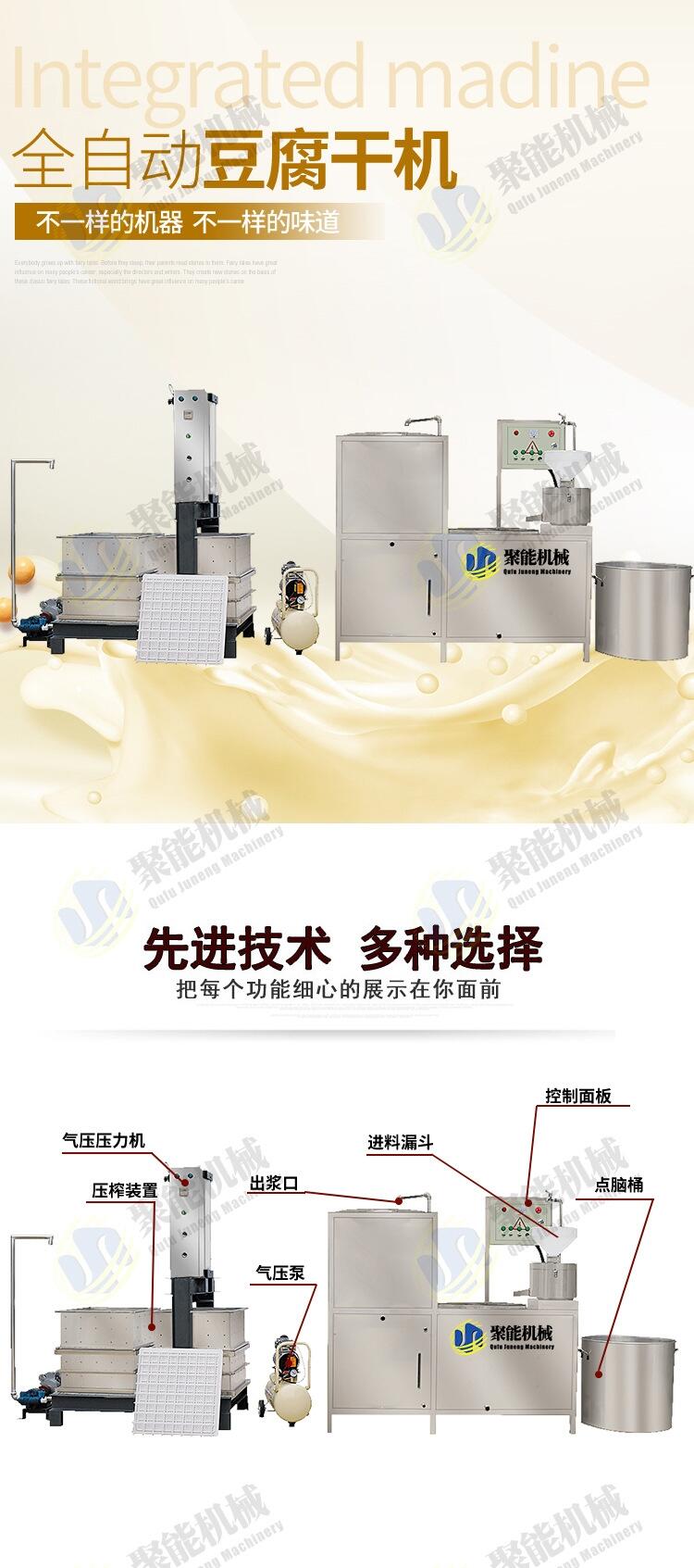 聚能机械新式豆干机械设备省时省力省人工,豆干机器设备使用电动气压成型装置,机械设备厂家直销,价格实惠。