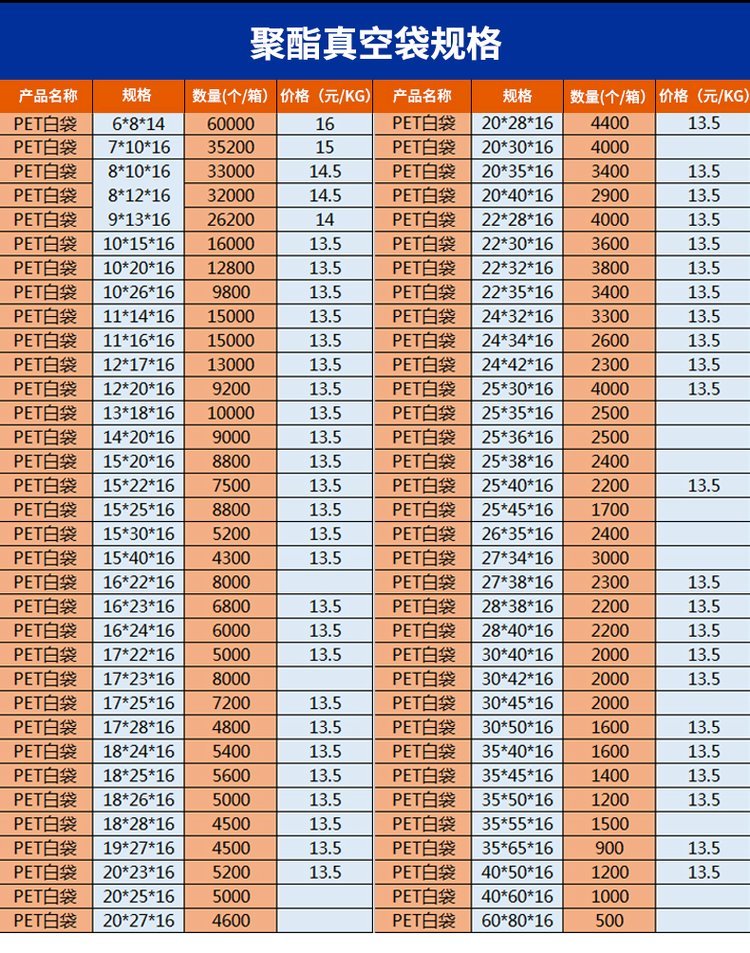 类 型 | pe真空袋 | ||