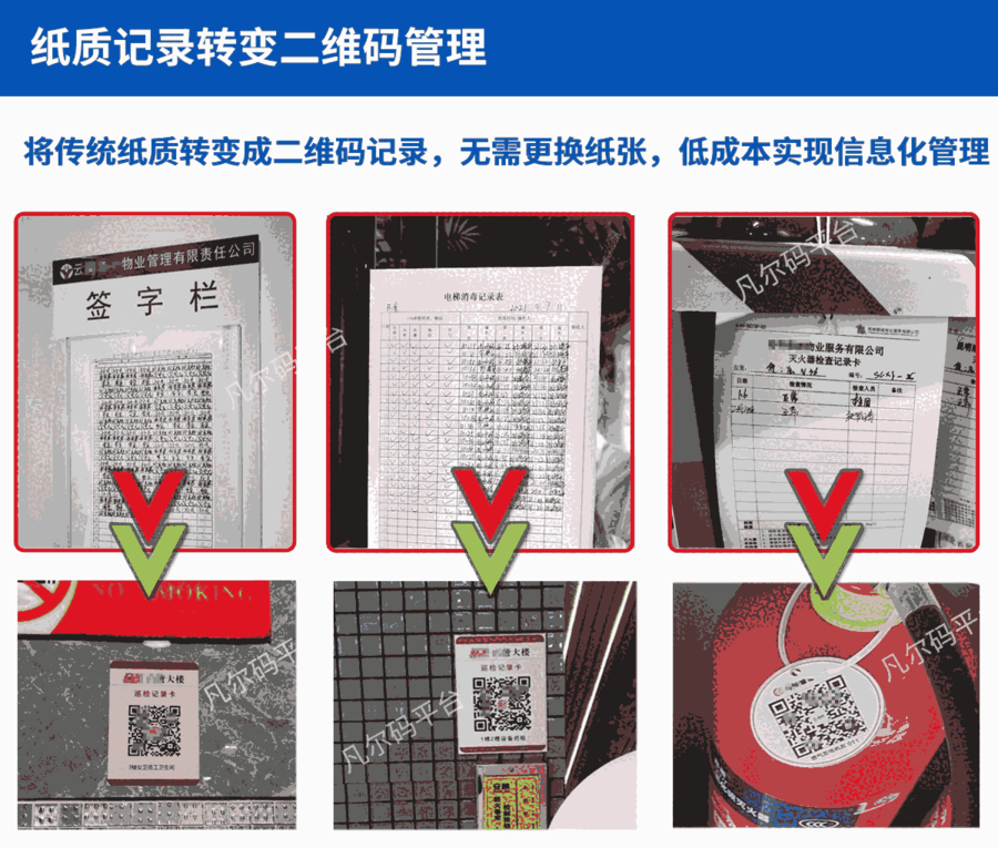 通过凡尔码平台实现消防防火巡查系统搭建,将防火巡查点罗列生成二维码,粘贴现场;微信扫一扫即可实现巡查管理;