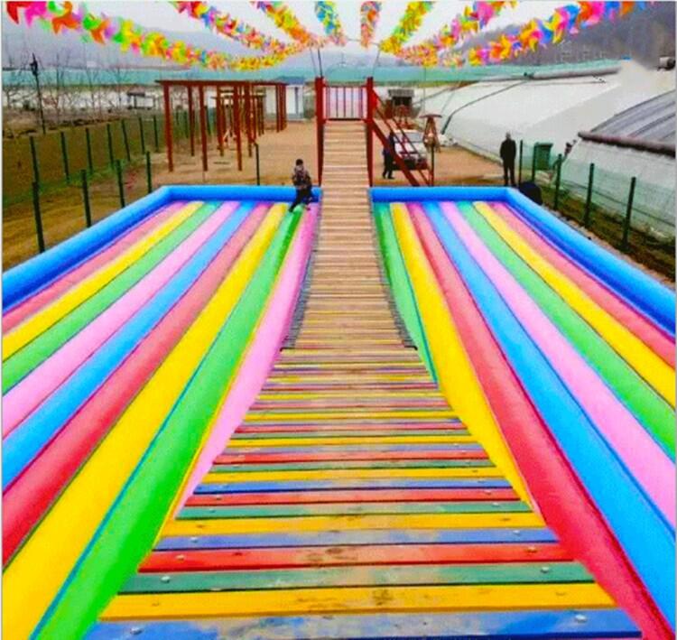 网红桥摆摆桥户外大型景区水上拓展吊桥设备充气防护气垫厂家定制