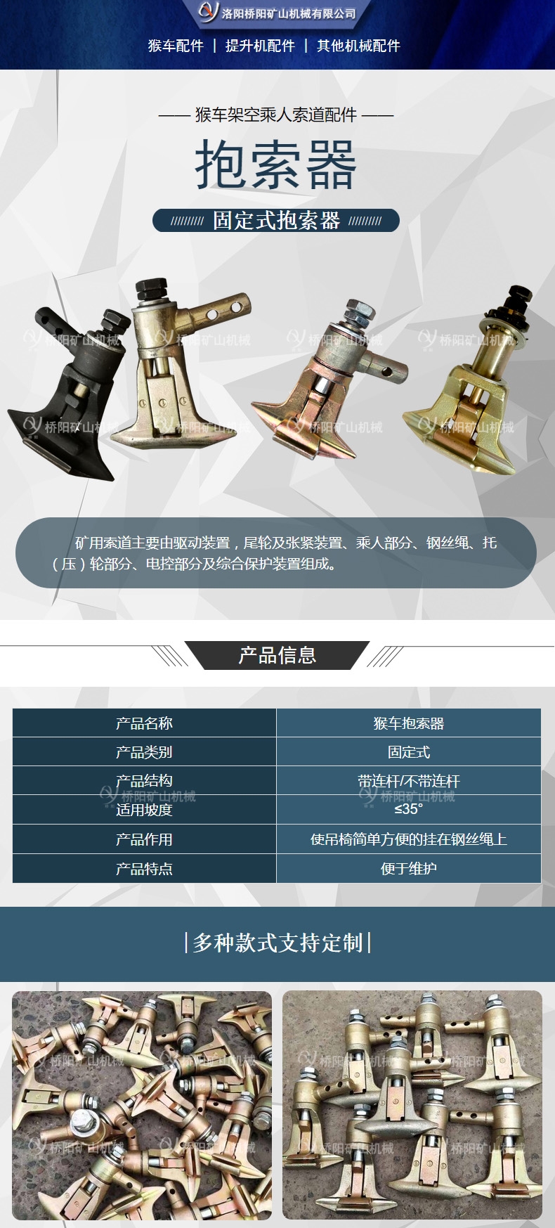 猴车索道脱挂乘人用 G-I型固定式抱索器