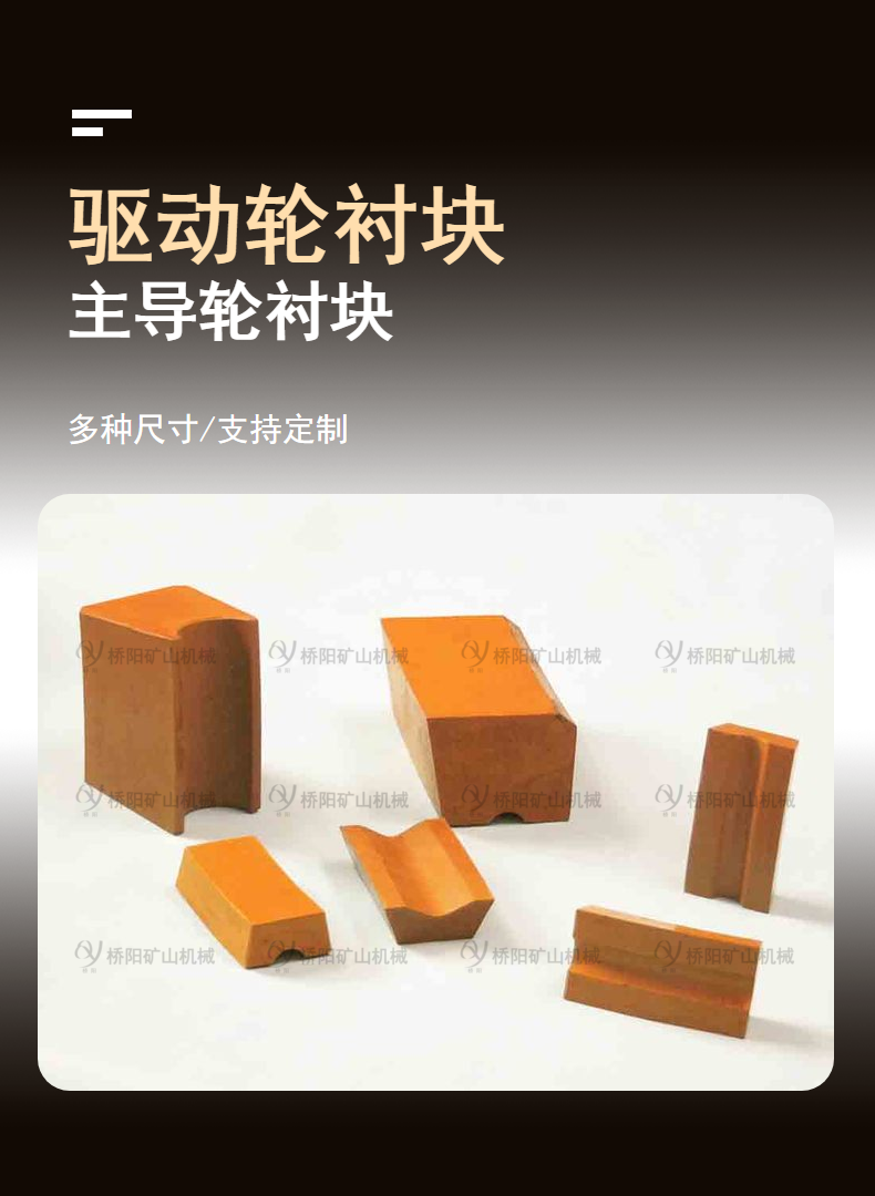 猴车驱动轮衬块用于猴车驱动轮上,驱动轮直径在0.8米-1.2米。
