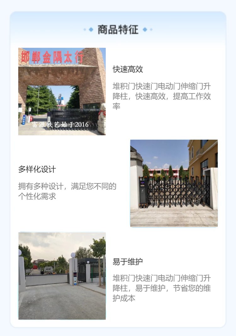 富源定制邯郸区域伸缩门快速门电动门升降柱抗压1500摆锤100弹性模量80
