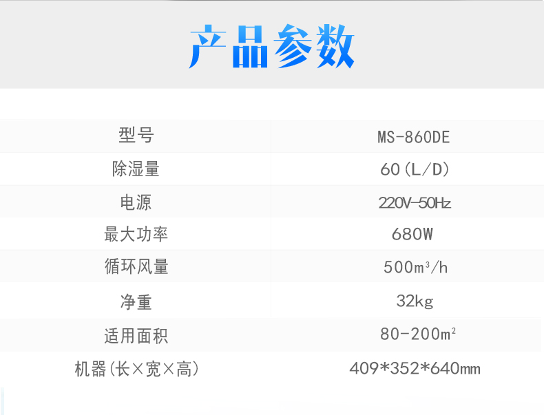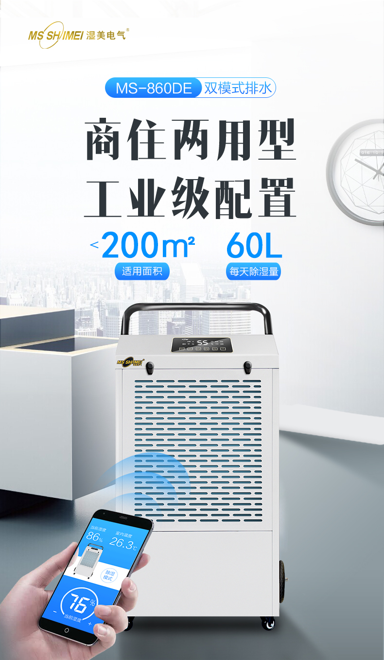 湿美工业除湿机别墅家用MS-860DE车间仓库地下室除潮抽湿80~200㎡