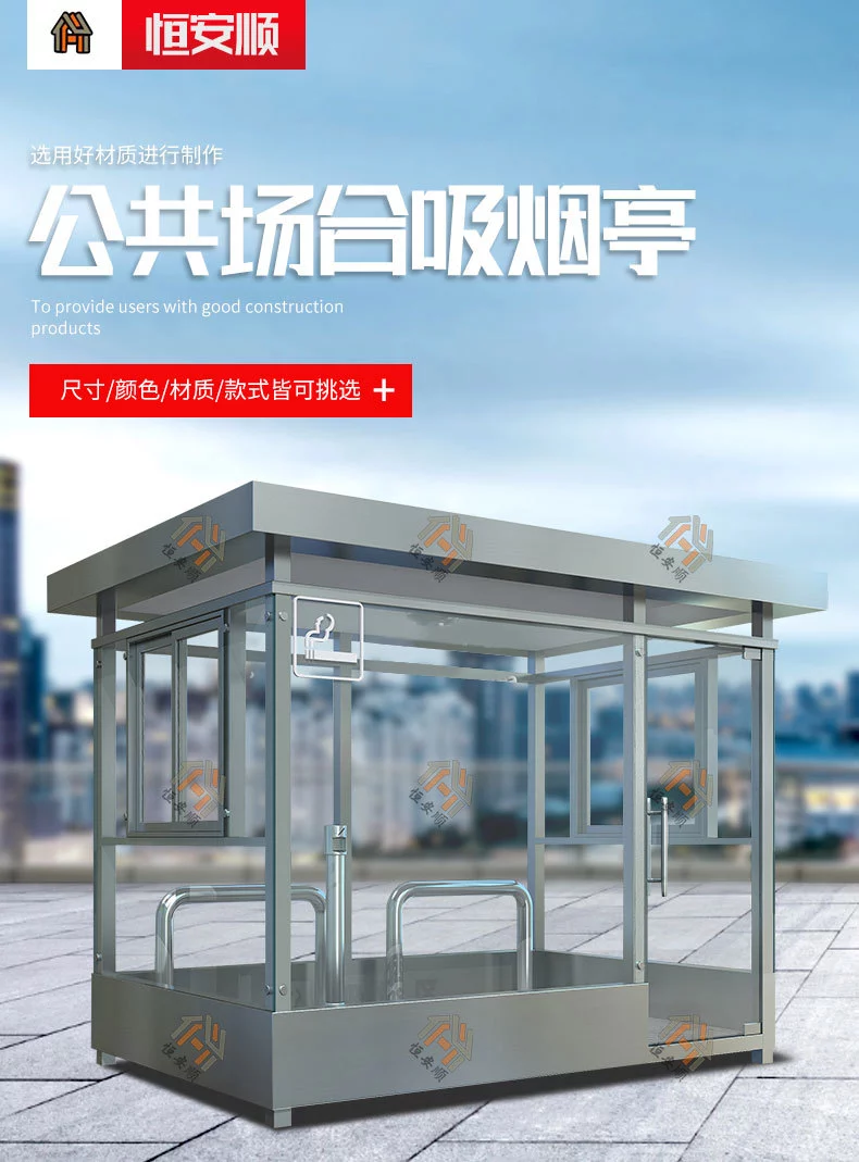 恒安顺定制不锈钢吸烟亭成品临时吸烟室户外景区公共场所吸烟房