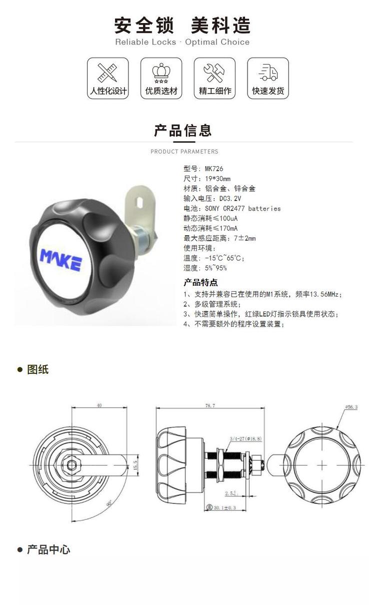 储物柜电子感应锁刷卡锁MK726颜色大小可定制