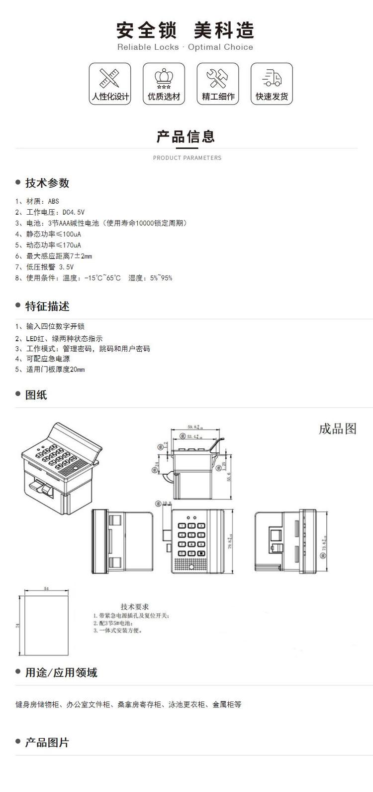 电子密码锁汗蒸房浴室更衣柜锁电子锁ABS衣柜锁MK725