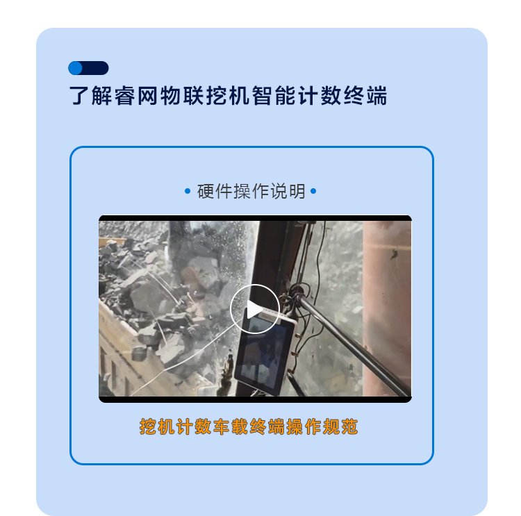 ????睿网物联挖机智能计数终端采用云计算结合物联网技术进行信息采集和数据分析,通过照片留证的方式降低人为误差的影响,数据自动采集,大大降低了外部因素对数据客观准确性的干扰,也降低了数据采集和统计的工作量。同时前端设备信息实时同步也让挖机作业情况随时随地可查,从而解决挖机管理中存在的各种问题。
