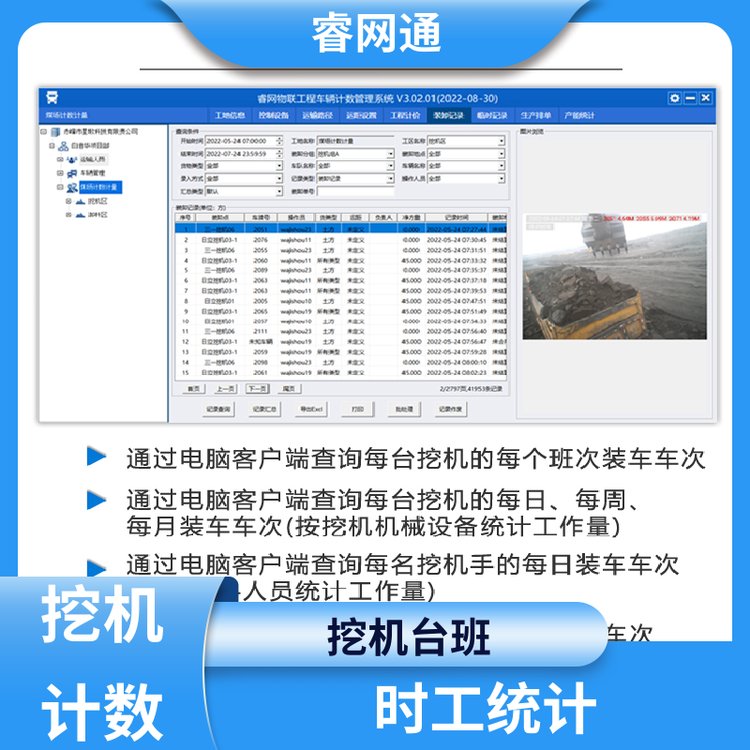 ????睿网物联挖机智能计数终端采用云计算结合物联网技术进行信息采集和数据分析,通过照片留证的方式降低人为误差的影响,数据自动采集,大大降低了外部因素对数据客观准确性的干扰,也降低了数据采集和统计的工作量。同时前端设备信息实时同步也让挖机作业情况随时随地可查,从而解决挖机管理中存在的各种问题。