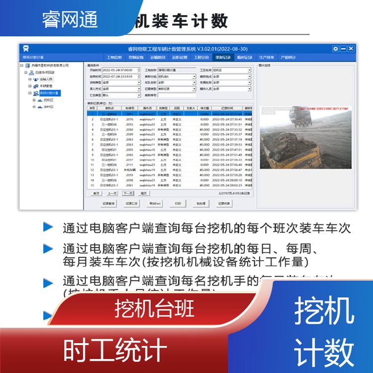 ????睿网物联挖机智能计数终端采用云计算结合物联网技术进行信息采集和数据分析,通过照片留证的方式降低人为误差的影响,数据自动采集,大大降低了外部因素对数据客观准确性的干扰,也降低了数据采集和统计的工作量。同时前端设备信息实时同步也让挖机作业情况随时随地可查,从而解决挖机管理中存在的各种问题。