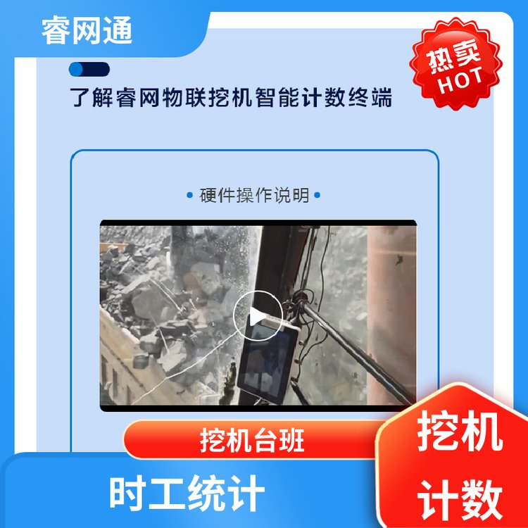 ????睿网物联挖机智能计数终端采用云计算结合物联网技术进行信息采集和数据分析,通过照片留证的方式降低人为误差的影响,数据自动采集,大大降低了外部因素对数据客观准确性的干扰,也降低了数据采集和统计的工作量。同时前端设备信息实时同步也让挖机作业情况随时随地可查,从而解决挖机管理中存在的各种问题。