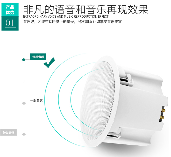 YTAER音泰尔大型商超酒店背景音乐IP网络有源天花吸顶喇叭