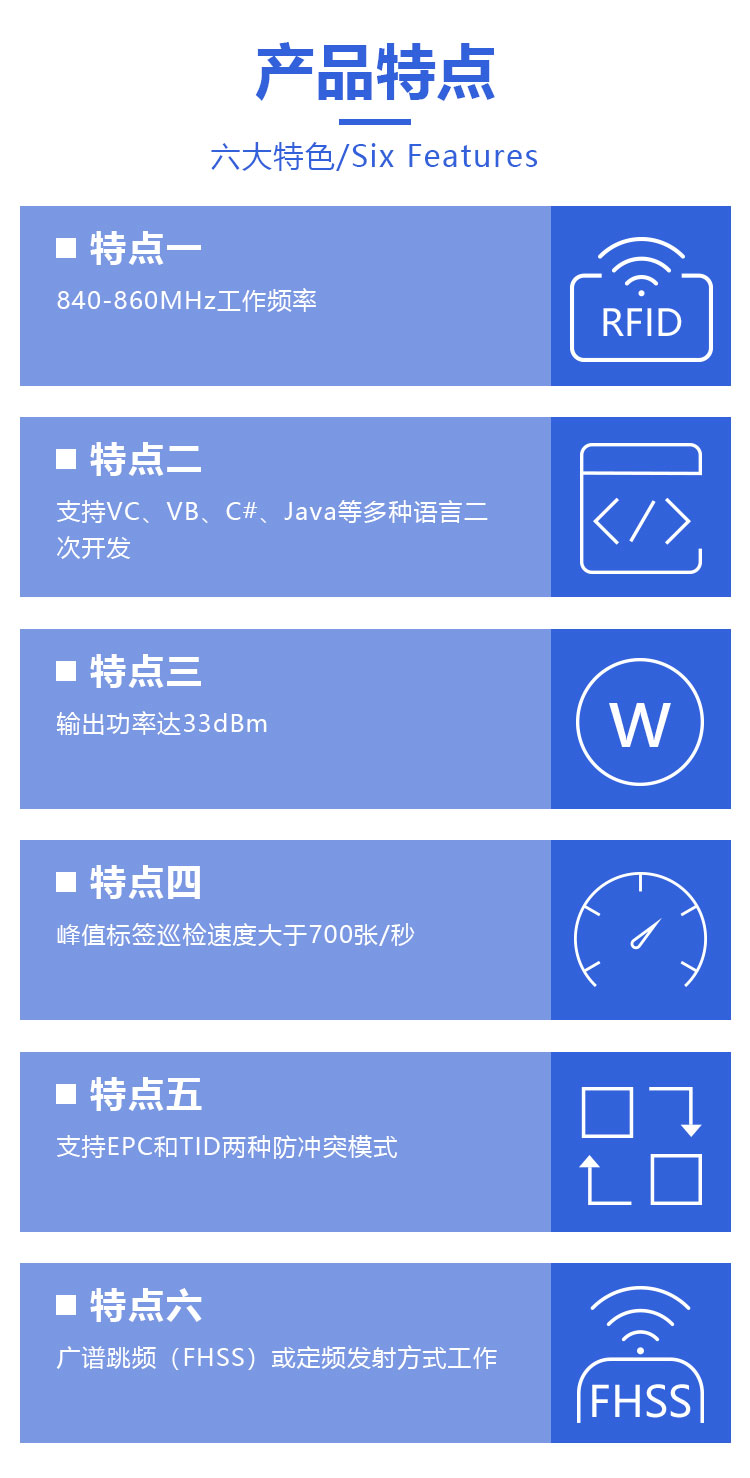 支持协议 | EPC CLASS1 G2、ISO18000-6B | ||