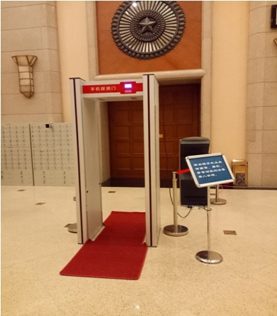 手机探测模式:探测设备安装在甲方指定人行通道位置,用于检测进入涉密区人员,无需规范姿势,不改变用户正常行走习惯,可探测人体是否携带处于开机或者关机状态(含移除电池、移除SIM卡、移除听筒、话筒)的手机、笔记本、iPad、相机等电子产品,并能进行位置声光报警;手机用铜箔包裹5层也可报警;手机电池放在口袋也能报警,全方位探测准确率大于95%。