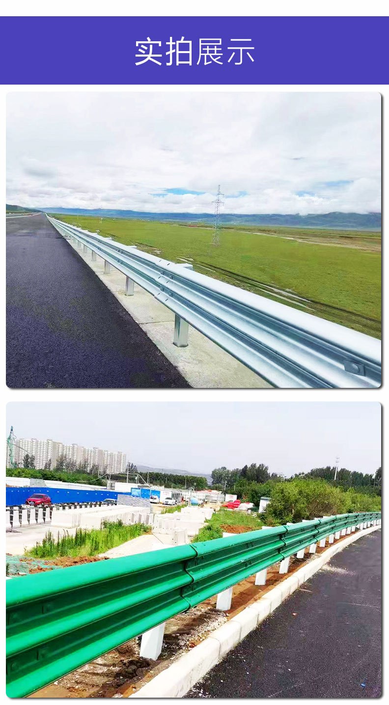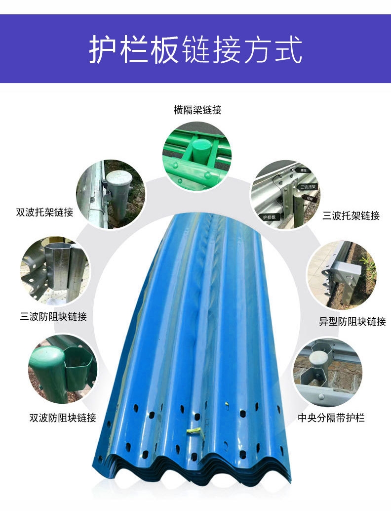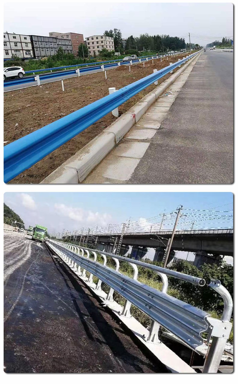 波形梁护栏是半刚性护栏的主要形式,它是一种以波纹状钢护栏板相互拼接并由主柱支撑的连续结构。它利用土基、立柱、横梁的变形来吸收碰撞能量,并迫使失控车辆改变方向,回复到正常的行驶方向,防止车辆冲出路外,以保护车辆和乘客,减少事故造成的损失。波形梁护栏钢柔相兼,具有较强的吸收碰撞能量的能力,具有较好的视线诱导功能,能与道路线形相协调,外形美观,可在小半径弯道上使用,损坏处容易更换。组合波形梁护栏可在窄中央分隔带上使用。对于车辆越出路(桥)外,有可能造成严重后果的区段,可选择加强波形梁护栏。