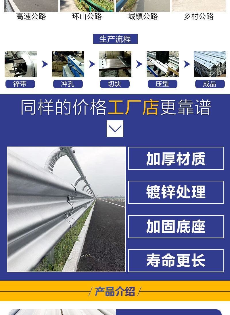 热镀锌防撞围栏高速公路护栏乡村路波形护栏板型二波三波防护栏