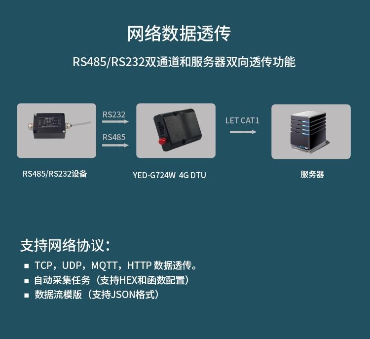 4G LTE DTU模块CAT1物联网RS485/232串口无线双向透明传输全网通