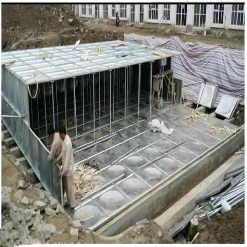 先把模压的板块进行拼装组合,选用螺栓和密封圈对板块密封联接的工艺,依据水箱规范长×宽×高进行螺栓拧接;