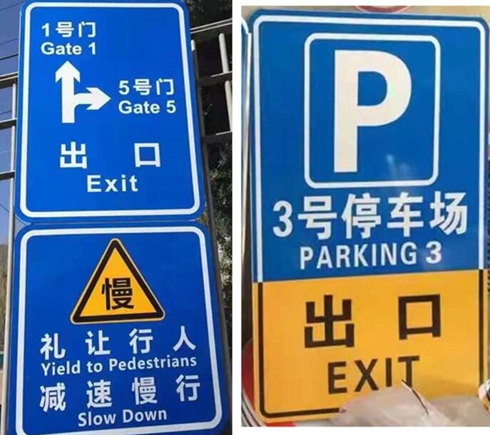 标志面包括形状、颜色、文字、图案等交通信息,反光型交通标志牌采用符合国际标准的反光标志膜(简称反光膜)制作,超过3平方以上交通标志牌底板边缘宜进行角铝/角钢加固,采用铝板贴反光膜加铝槽。