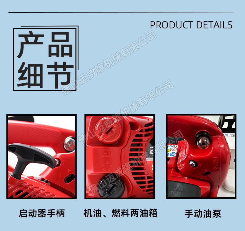 强劲动力:配备风冷二冲程单缸引擎,提供1.07kw的制动功率。
