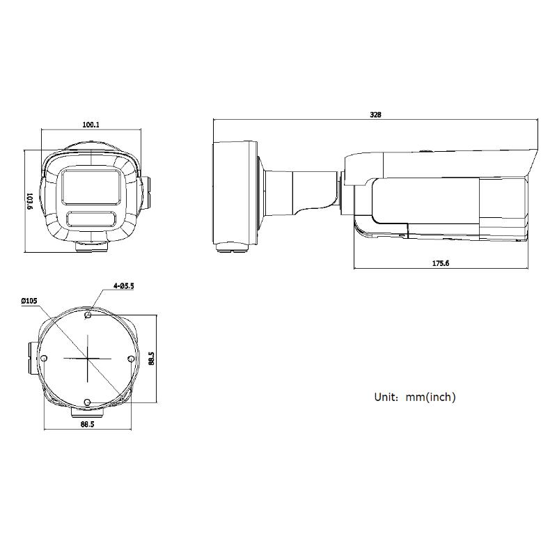 DS-2CD2626FWDV4-LZS4/ZJ 海康200万变焦筒型网络摄像机 产品尺寸: