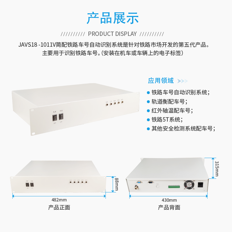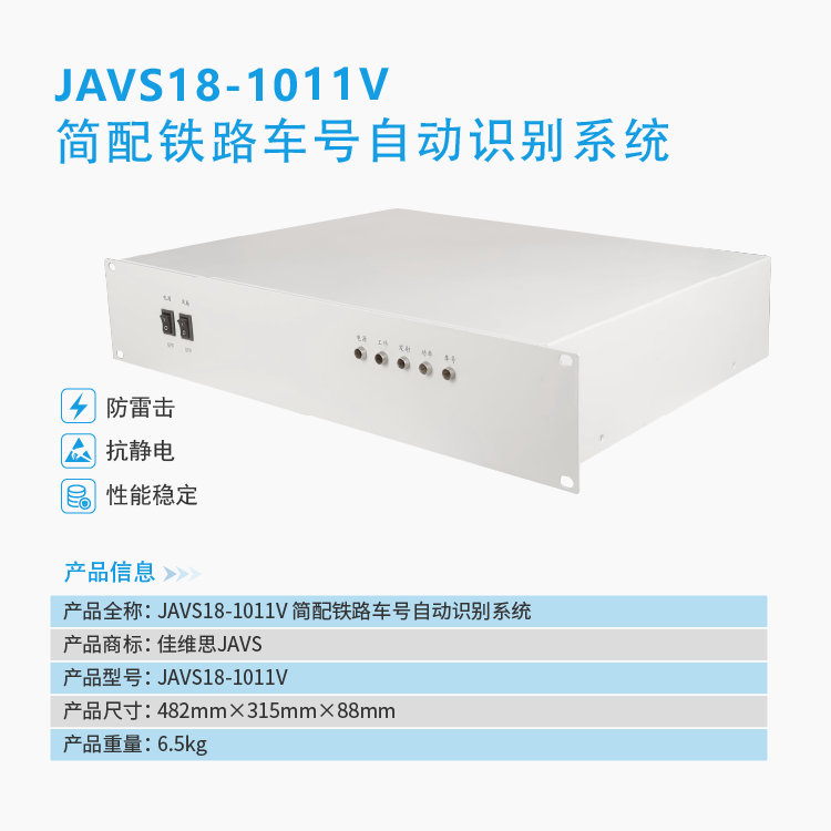 JAVS18-1011V简配铁路车号自动识别系统主要针对铁路作业、管理、监控系统开发的一款高智能、高稳定的车号识别系统,能够简化铁路作业流程、减少铁路停留时间、提高铁路车辆的使用率。