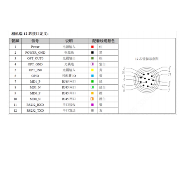 R3016PMG-07H-WGN01 华睿科技R3000系列6.72mm镜头160万像素全局快门60fps百兆网口白光智能读码器 接口定义: