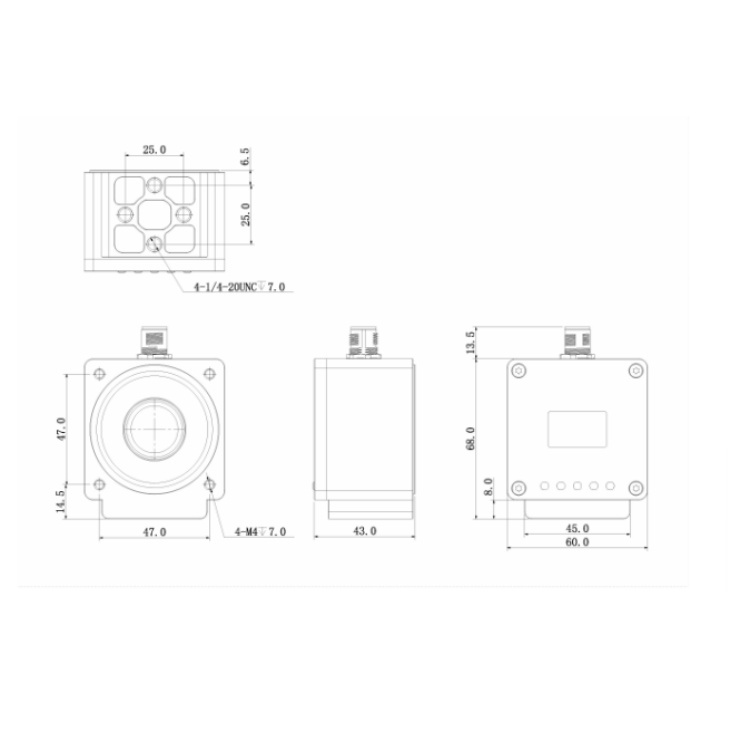 R3138MG012 华睿科技R3000系列1/4英寸CMOS镜头3mm全局快门120fps白色光源智能读码器 结构尺寸图(mm):