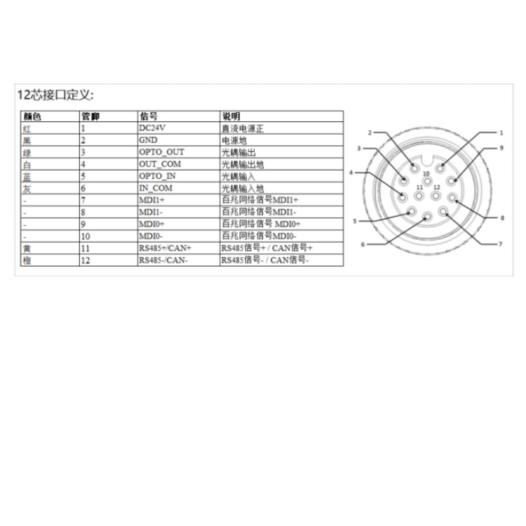 连接器 1个工业级M12连接器,分别是以太网、GPIO接口