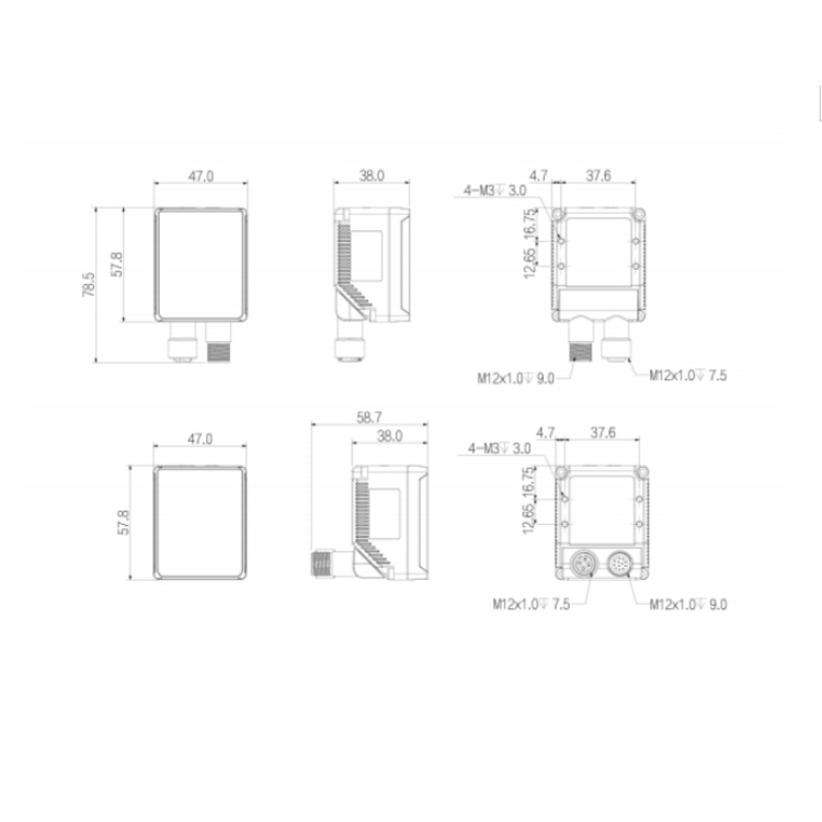 R4013MG-12M-RGG01 华睿科技R4000系列12mm镜头130万像素全局快门60fps百兆以太网接口红光智能读码器 结构尺寸图(mm):
