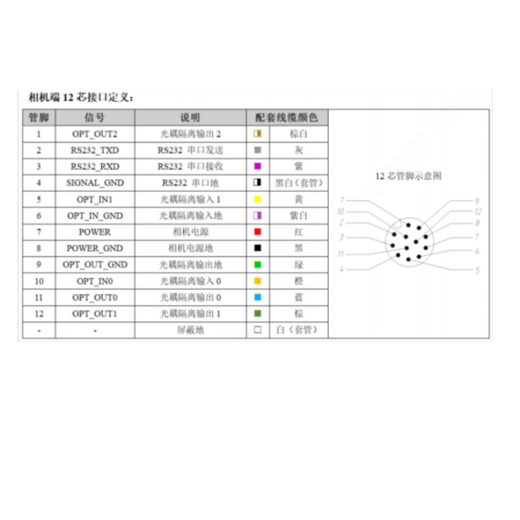 R4013MG-12M-RGG01 华睿科技R4000系列12mm镜头130万像素全局快门60fps百兆以太网接口红光智能读码器 接口定义: