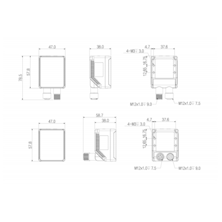 RD13G-07MWG1 华睿科技R4000系列130万像素7mm镜头全局快门60fps百兆以太网接口内置AI算法白光智能读码器 结构尺寸图(mm):